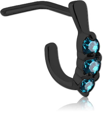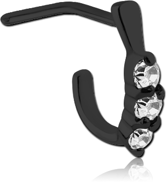 BLACK PVD COATED SURGICAL STEEL GRADE 316L 90 DEGREE JEWELED WRAP AROUND NOSE STUD