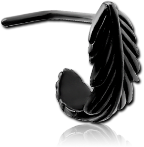 BLACK PVD COATED SURGICAL STEEL GRADE 316L 90 DEGREE WRAP AROUND NOSE STUD - FEATHER