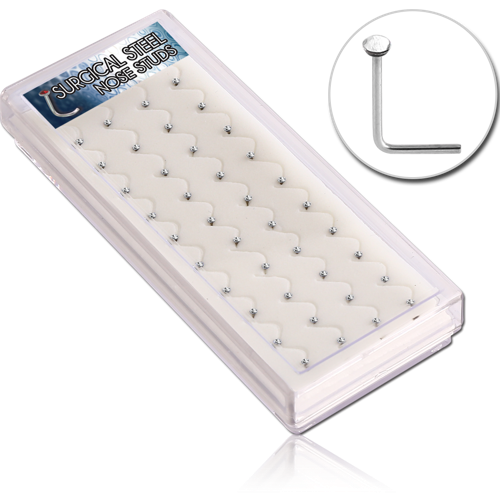 BOX OF 40 SURGICAL STEEL GRADE 316L FLAT JEWELED 90 DEGREE NOSE STUDS