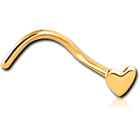 GOLD PVD 18K COATED SURGICAL STEEL GRADE 316L HEART CURVED NOSE STUD