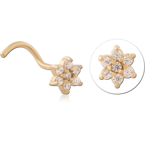 GOLD PVD 18K COATED SURGICAL STEEL GRADE 316L CURVED JEWELED NOSE STUD