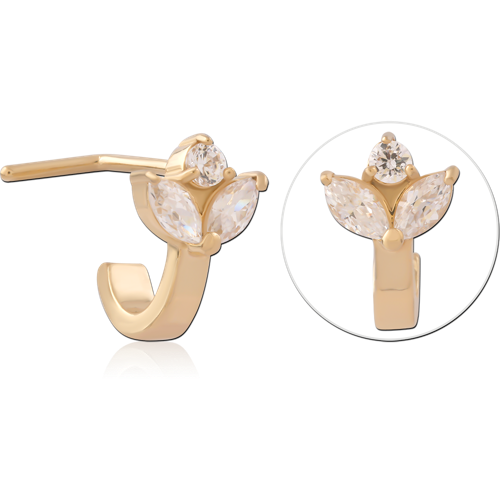 GOLD PVD 18K COATED SURGICAL STEEL GRADE 316L 90 DEGREE JEWELED WRAP AROUND NOSE STUD