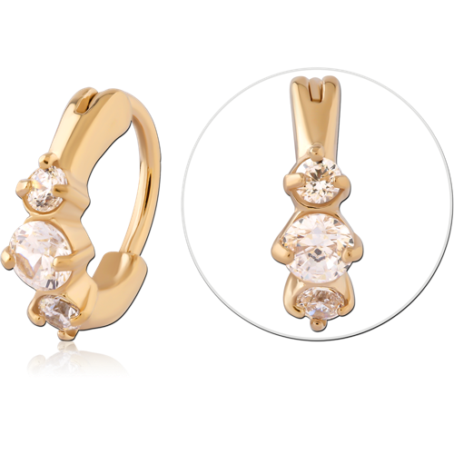 GOLD PVD 18K COATED SURGICAL STEEL GRADE 316L JEWELED NOSE RING CLICKER