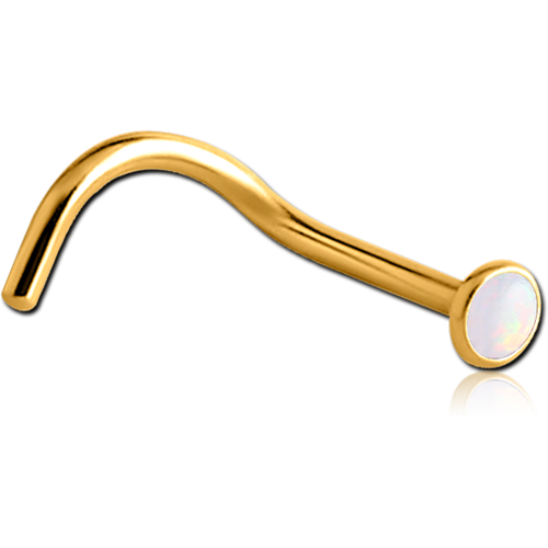 GOLD PVD COATED SURGICAL STEEL GRADE 316L ORGANIC SYNTHETIC OPAL CURVED NOSE STUD