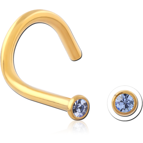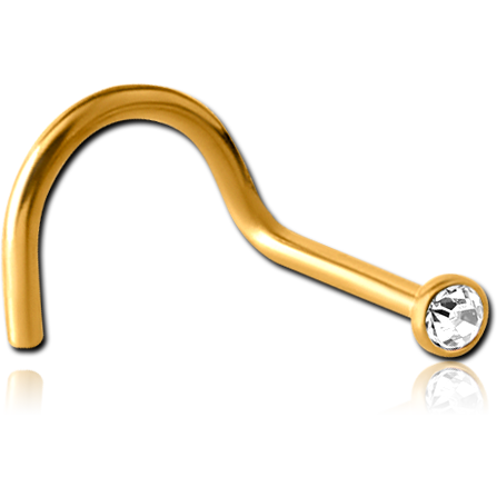 GOLD PVD COATED SURGICAL STEEL GRADE 316L PREMIUM CRYSTAL JEWELED LARGE LEFT CURVE NOSE STUD