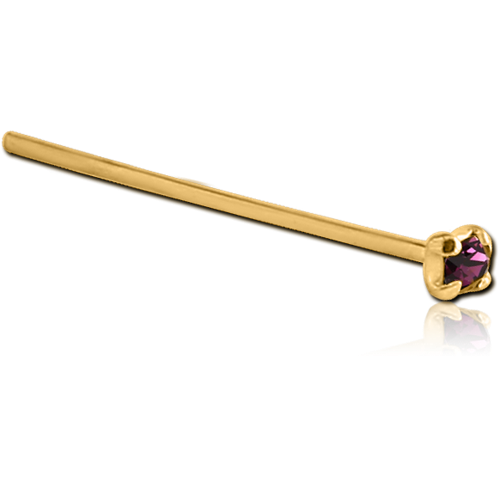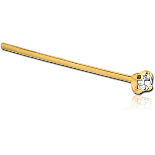 GOLD PLATED STERLING 925 SILVER STRAIGHT PRONG SET JEWELED NOSE STUD