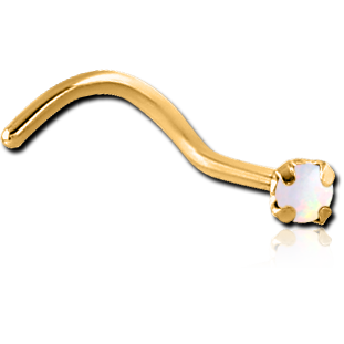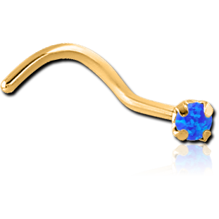 GOLD PVD COATED SURGICAL STEEL GRADE 316L CURVED PRONG SET 1.5MM ORGANIC SYNTHETIC OPAL NOSE STUD