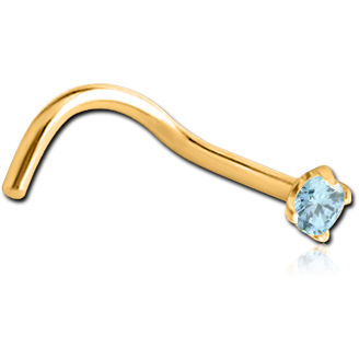 GOLD PVD COATED SURGICAL STEEL GRADE 316L CURVED PRONG SET 2MM JEWELED NOSE STUD