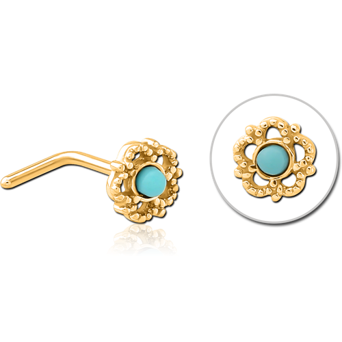 GOLD PVD COATED SURGICAL STEEL GRADE 316L 90 DEGREE JEWELED NOSE STUD - FLOWER