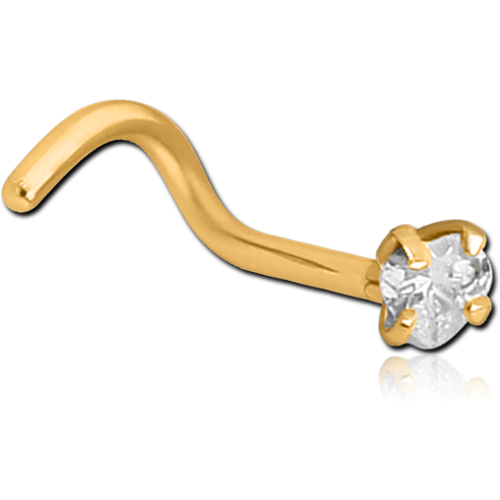 GOLD PVD COATED SURGICAL STEEL GRADE 316L CURVED PRONG SET HEART JEWELED NOSE STUD