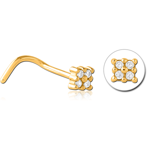 GOLD PVD COATED SURGICAL STEEL GRADE 316L JEWELED NOSE STUDS