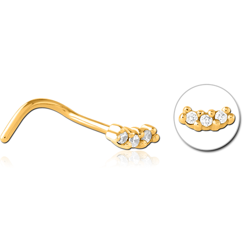 GOLD PVD COATED SURGICAL STEEL GRADE 316L JEWELED NOSE STUDS