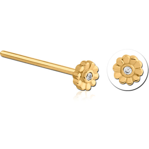 GOLD PVD COATED SURGICAL STEEL GRADE 316L STRAIGHT JEWELED NOSE STUD