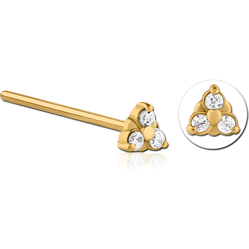 GOLD PVD COATED SURGICAL STEEL GRADE 316L STRAIGHT JEWELED NOSE STUD
