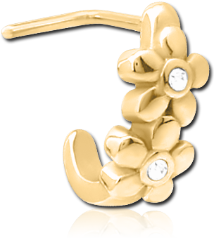 GOLD PVD COATED SURGICAL STEEL GRADE 316L STRAIGHT JEWELED WRAP AROUND NOSE STUD - FLOWER