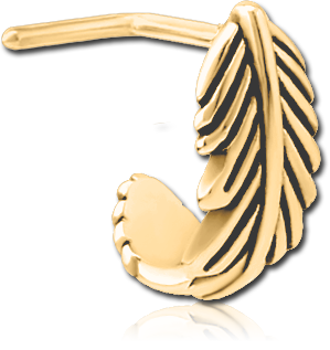 GOLD PVD COATED SURGICAL STEEL GRADE 316L 90 DEGREE WRAP AROUND NOSE STUD - FEATHER