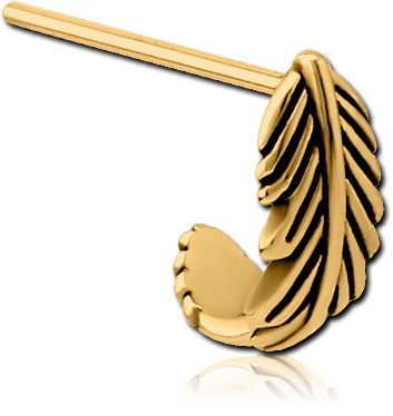 GOLD PVD COATED SURGICAL STEEL GRADE 316L STRAIGHT WRAP AROUND NOSE STUD - FEATHER