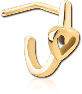 GOLD PVD COATED SURGICAL STEEL GRADE 316L 90 DEGREE WRAP AROUND NOSE STUD - HEART