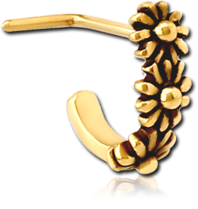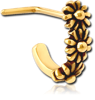 GOLD PVD COATED SURGICAL STEEL GRADE 316L 90 DEGREE WRAP AROUND NOSE STUD - THREE FLOWERS