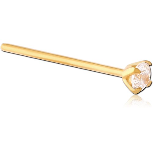 GOLD PVD COTED TITANIUM ALLOY STRAIGHT PRONG SET 3MM JEWELED NOSE STUD 15MM