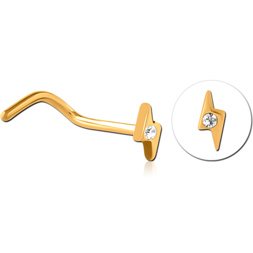 GOLD PVD COTED TITANIUM ALLOY JEWELED CURVED NOSE STUD - THUNDER