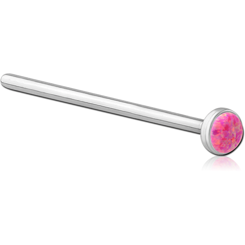 SURGICAL STEEL GRADE 316L JEWELED STRAIGHT NOSE STUD 15MM SYNTHETIC OPAL