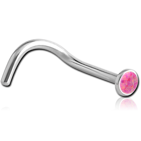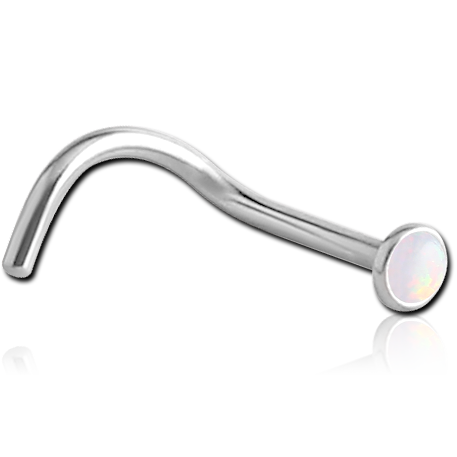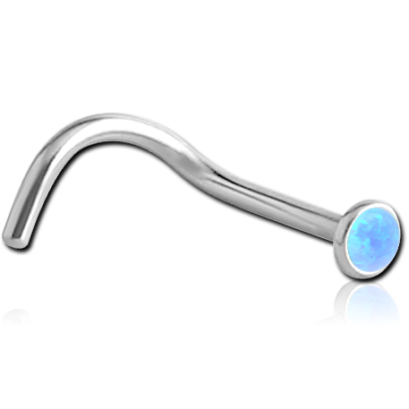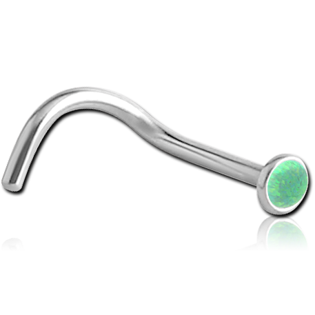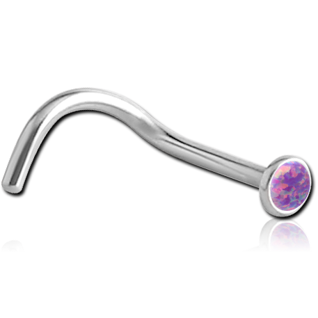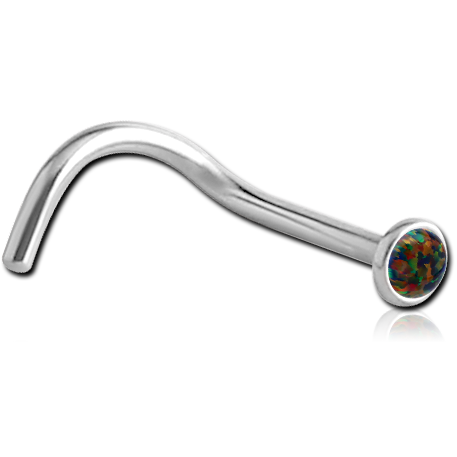 SURGICAL STEEL GRADE 316L JEWELED CURVED NOSE STUD WITH ORGANIC SYNTHETIC OPAL