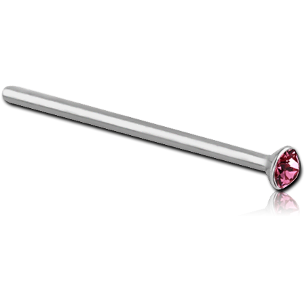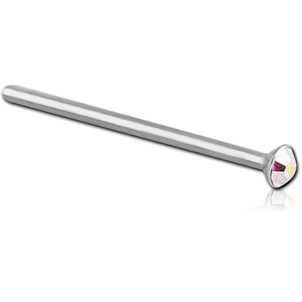 SURGICAL STEEL GRADE 316L JEWELED STRAIGHT NOSE STUD WITH GLUED STONE 15MM