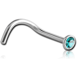 SURGICAL STEEL GRADE 316L JEWELED CURVED NOSE STUD WITH GLUED STONE