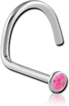 SURGICAL STEEL GRADE 316L LARGE LEFT CURVE OPAL JEWELED NOSE STUD