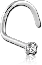 SURGICAL STEEL GRADE 316L LARGE LEFT CURVED PRONG SET 1.5MM JEWELED NOSE STUD