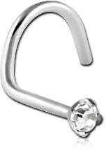 SURGICAL STEEL GRADE 316L LARGE LEFT CURVED PRONG SET 2MM JEWELED NOSE STUD