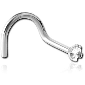 SURGICAL STEEL GRADE 316L LARGE LEFT CURVED NOSE STUD PRONG SET DIAMOND 1.35MM