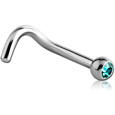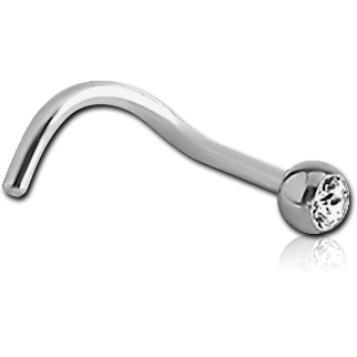 SURGICAL STEEL GRADE 316L 1.2MM THREADING CURVED NOSE STUD WITH JEWELED BALL