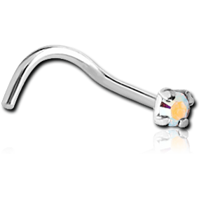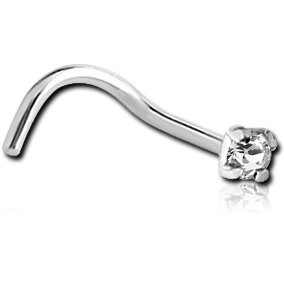 STERLING 925 SILVER PRONG SET JEWELED CURVED NOSE STUD