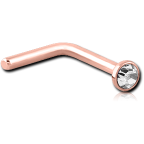 ROSE GOLD PVD COATED SURGICAL STEEL GRADE 316L VALUE CRYSTAL JEWELED 90 DEGREE NOSE STUD