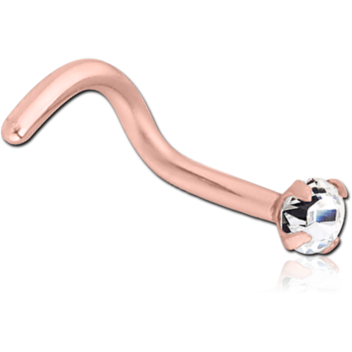ROSE GOLD PVD COATED SURGICAL STEEL GRADE 316L CURVED PRONG SET 2.5MM JEWELED NOSE STUD