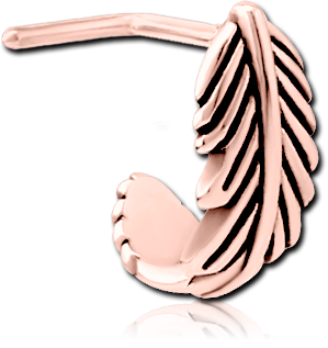 ROSE GOLD PVD COATED SURGICAL STEEL GRADE 316L 90 DEGREE WRAP AROUND NOSE STUD - FEATHER