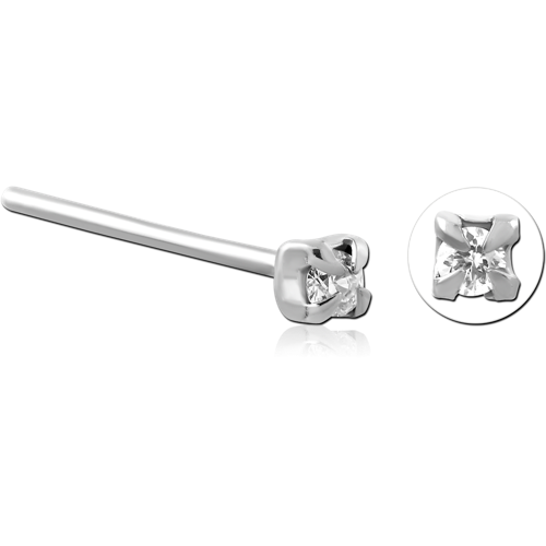 STERLING SILVER 925 RHODIUM COATED JEWELED PRONG SET STRAIGHT NOSE STUD