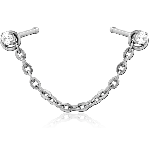 SURGICAL STEEL GRADE 316L PRONG SET 1.5MM JEWELED NOSE BONE WITH CHAIN