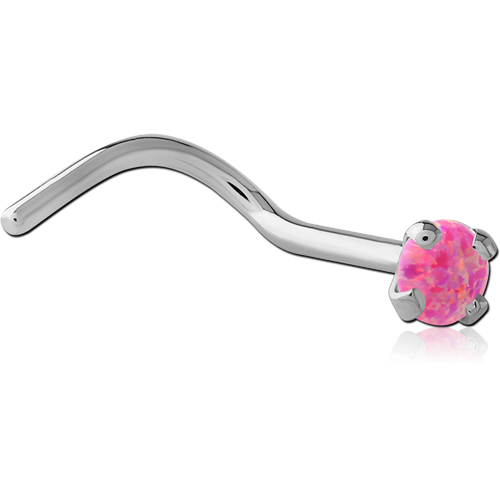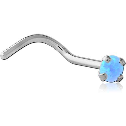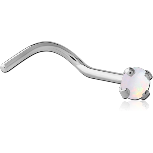 SURGICAL STEEL GRADE 316L CURVED PRONG SET 2MM JEWELED NOSE STUD WITH ORGANIC SYNTHETIC OPAL