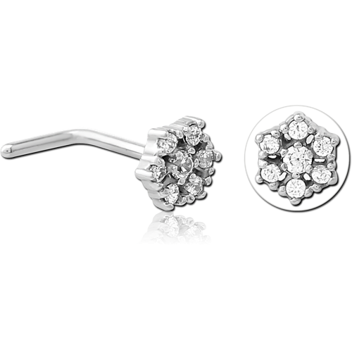 SURGICAL STEEL GRADE 316L 90 DEGREE JEWELED NOSE STUD - FLOWER