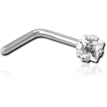 SURGICAL STEEL GRADE 316L 90 DEGREE PRONG SET SQUARE JEWELED NOSE STUD