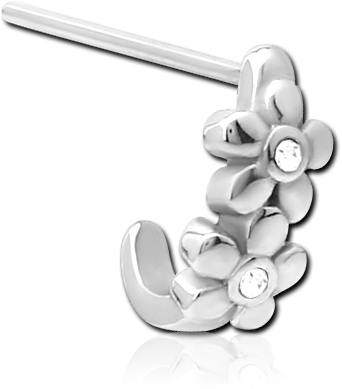 SURGICAL STEEL GRADE 316L STRAIGHT JEWELED WRAP AROUND NOSE STUD - FLOWER
