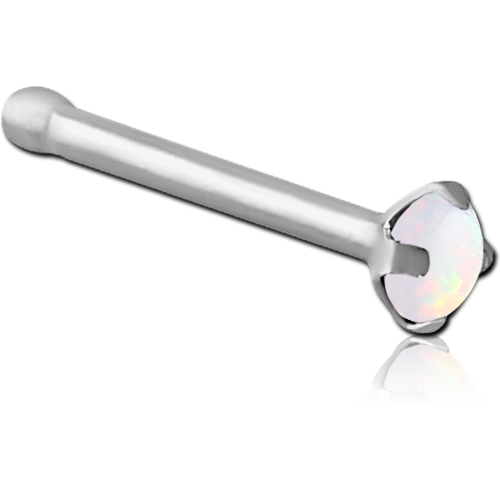 SURGICAL STEEL GRADE 316L PRONG SET 3 MM JEWELED NOSE BONE WITH SYNTHETIC OPAL