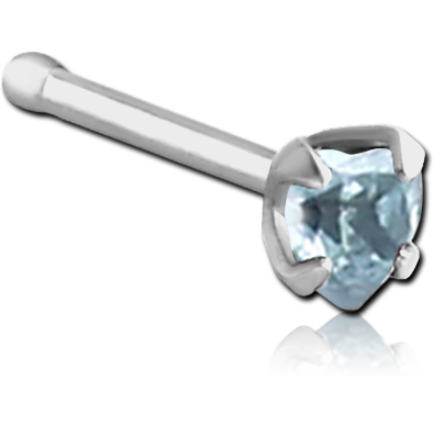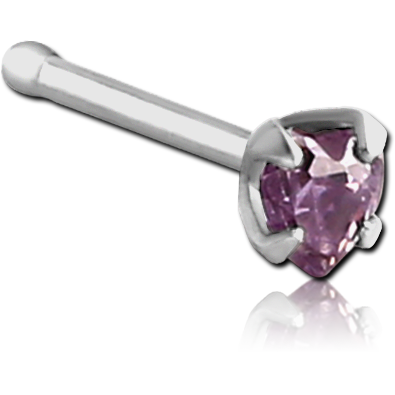 SURGICAL STEEL GRADE 316L PRONG SET HEART JEWELED NOSE BONE