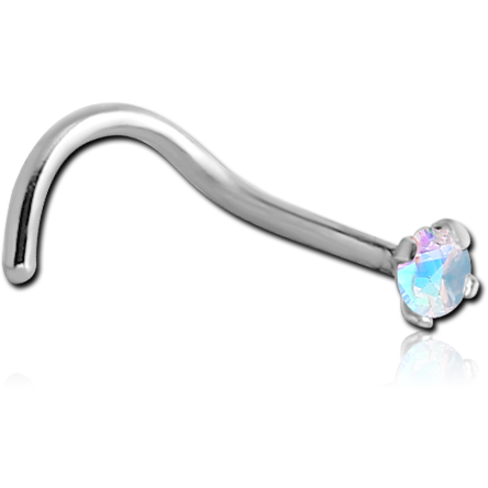 TITANIUM ALLOY CURVED PRONG SET 2MM JEWELED NOSE STUD