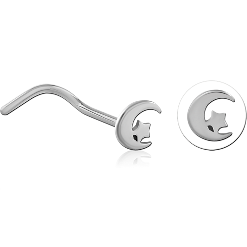 TITANIUM ALLOY CURVED NOSE STUD - MOON AND STAR