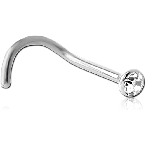 18 KARAT GOLD WHITE CURVED NOSE STUD 1.6MM BEZEL SET DIAMOND