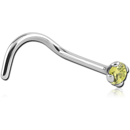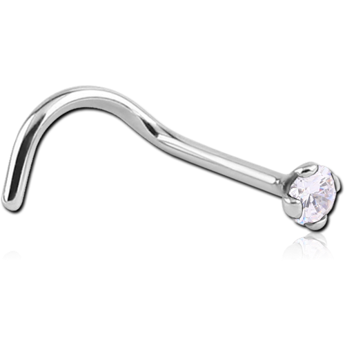 18 KARAT GOLD WHITE 1.5MM PRONG SET JEWELED CURVED NOSE STUD